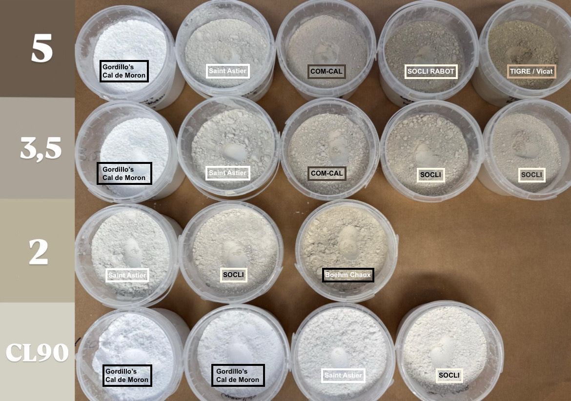 • witte romige natuurlijke hydraulische kalk conform EN 459-1
